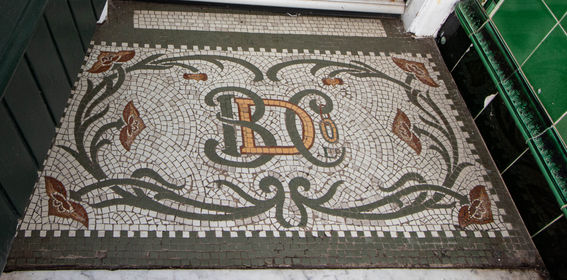 For many years, premises occupied by Robert Aitken, chemist and aerated water manufacturer. The Buttercup Dairy Company opened this shop in the 1920s, operating until about 1960. The tile mural in the entrance illustrates a young girl holding a buttercup to a docile cow; the mural was the trademark of the Company. Several other examples of the mural survive today at Selkirk, Innerleithen and Denny.